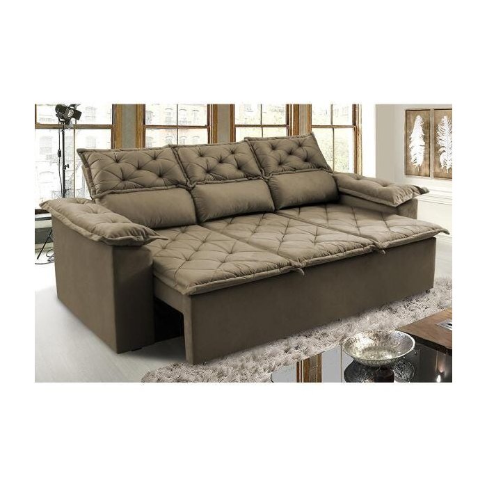Sofá 3 Lugares Retrátil e Reclinável Cama Inbox Compact 2.00M Velusoft Castor