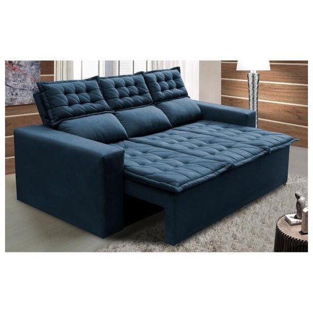 Sofá 3 Lugares Retrátil e Reclinável Cama Inbox Slim 2,00M Velusoft Azul Azul
