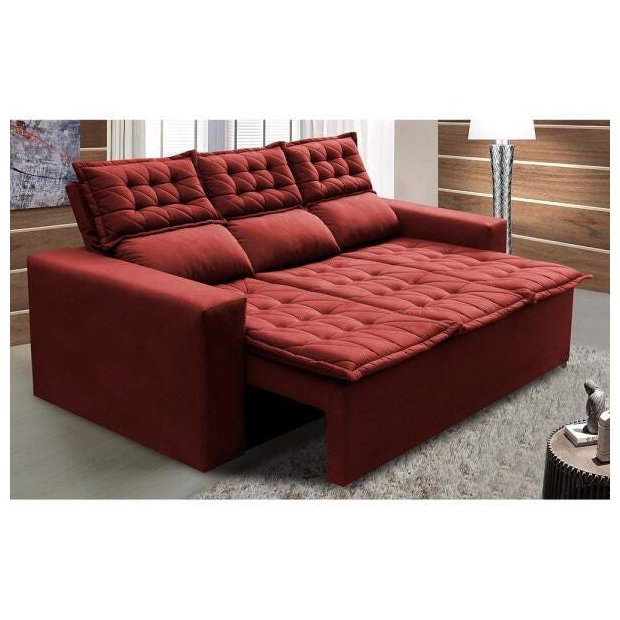 Sofá 3 Lugares Retrátil e Reclinável Cama Inbox Slim 2,00M Velusoft Vermelho Vermelho