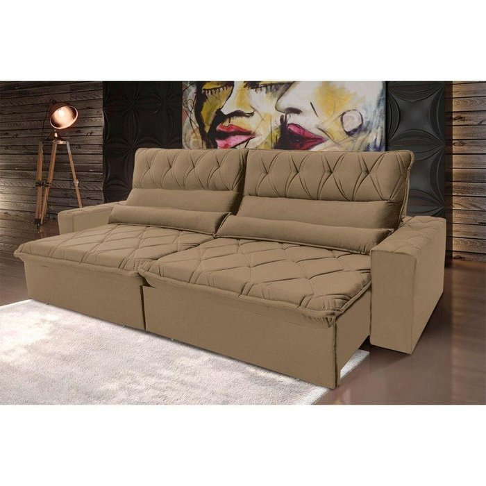 Sofá 3 Lugares Retrátil e Reclinável Hellen Atrative Platinum Tabaco