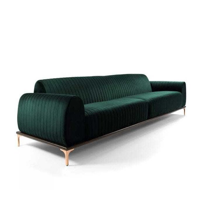 Sofá 3 Lugares Sala de Estar Base de Madeira Euro 2,10M Veludo Verde - Gran Belo