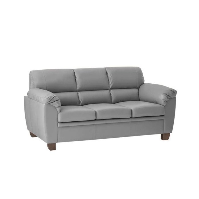 Sofá 3 Lugares Sala de Estar Pés em Madeira Nauru Couro Cinza - Gran Belo