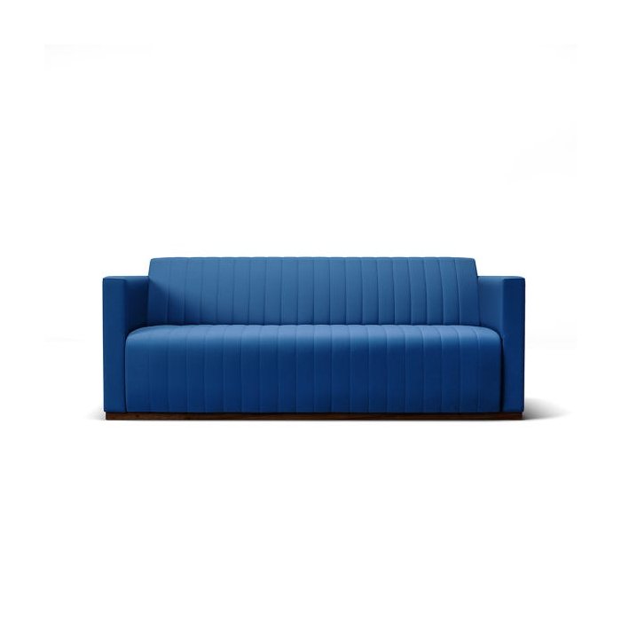 Sofá 3 Lugares Seller Veludo Azul B-304 Base de Madeira - D'Rossi