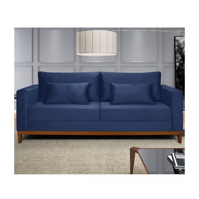 Sofá 3 Lugares Suede Veludo Bahamas Império Estofados Azul Marinho