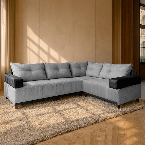 Sofá 4 Lugares 1,77x2,57m Canto Leona Gold Bom Pastor Linho Cinza/preto Cinza/Preto