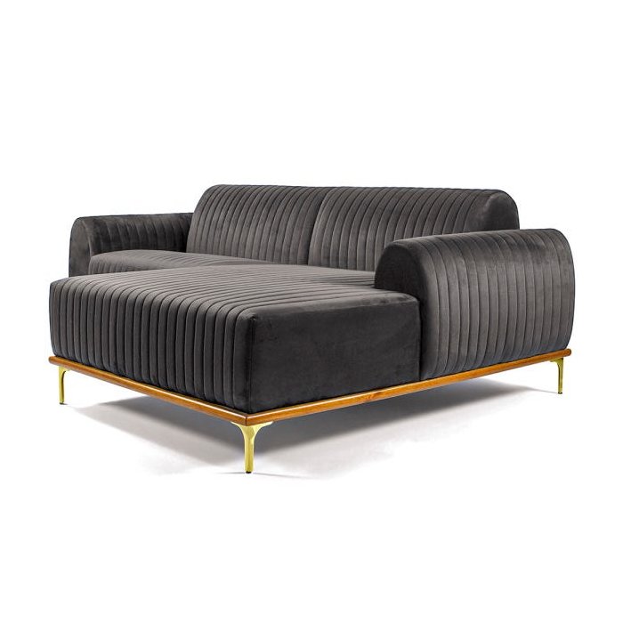 Sofá 4 Lugares 2,30M Chaise Esquerdo Molino Base Madeira Pés Gold Veludo Granizo
