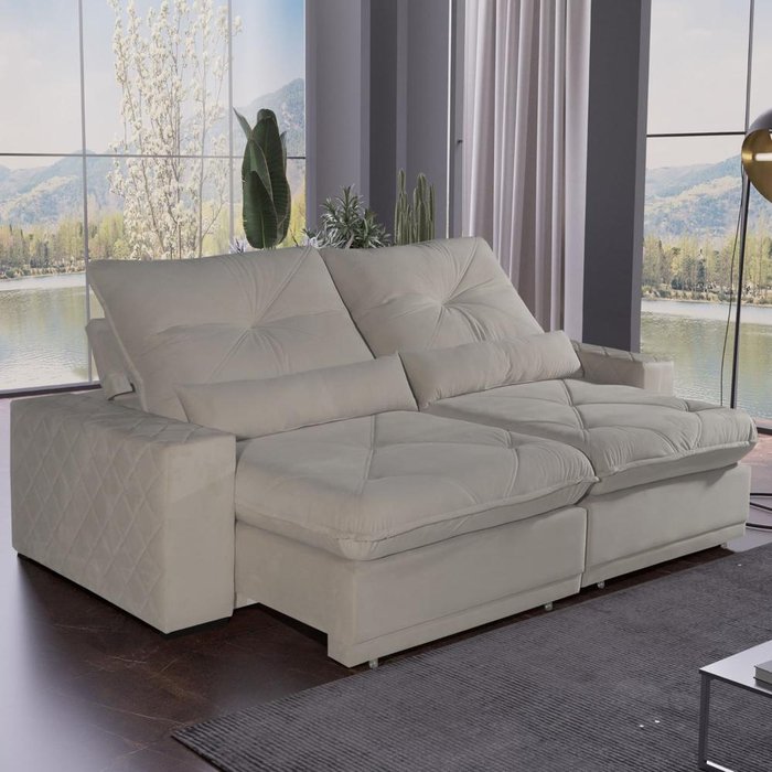 Sofá 4 Lugares 2,50m Retrátil e Reclinável Átila Bom Pastor Bege