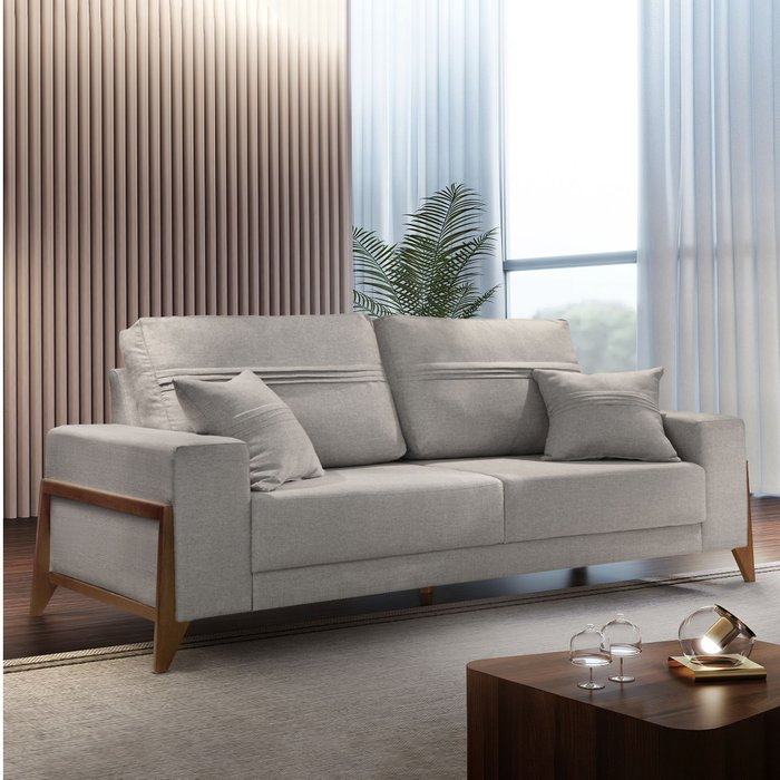 Sofá 4 lugares 240cm com Almofadas Milão Cinza Claro