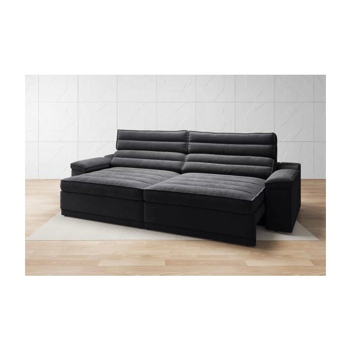 Sofá 4 Lugares Assento Retrátil e Reclinável Preto 2,50M Nancy - At.Home