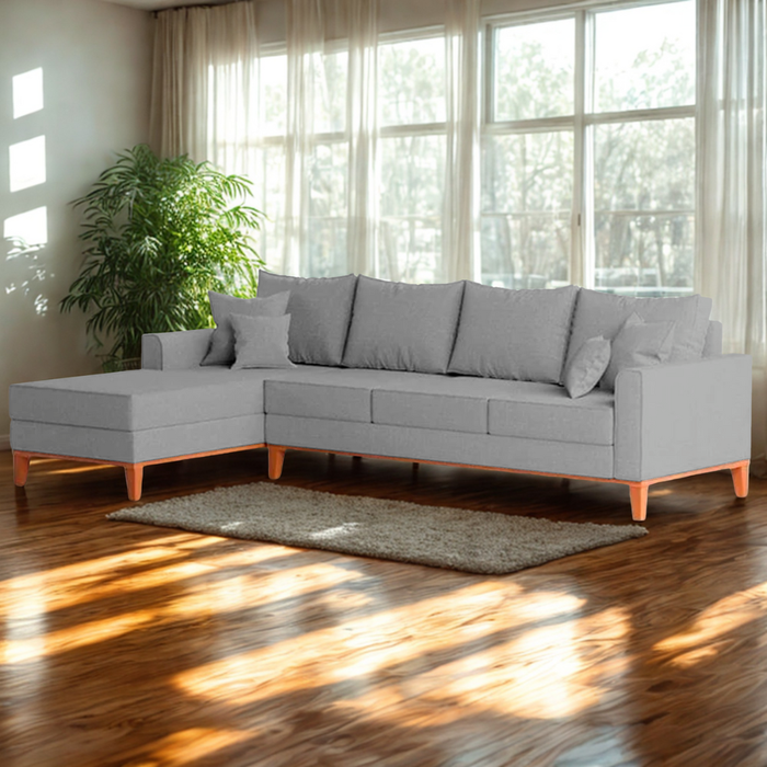 Sofá 4 Lugares Beny com Chaise Esquerdo Linho Cinza