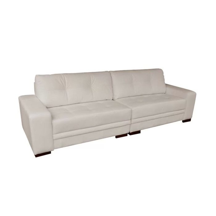 Sofá 4 Lugares Bipartido Sala de Estar Milano 2,60m Couro Off White - Gran Belo