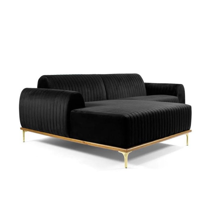 Sofá 4 Lugares com Chaise Base de Madeira Euro 2,65M Veludo Preto - Gran Belo