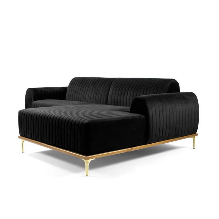 Sofá 4 Lugares com Chaise Esquerdo Base de Madeira Euro 265 cm Veludo Preto - Gran Belo Definitivamente a cara da elegância! O Sofá Chaise Euro possui um grande potencial de valorizar o ambiente que é inserido. Para você que deseja elevar o patamar de elegância da sua casa, é a opção ideal. Conforto e estilo sem igual.
