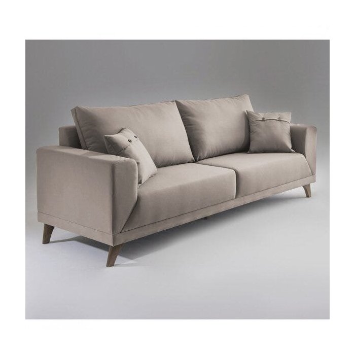 Sofa 4 Lugares Com Pes Em Imbuia Manchester Bege/Marrom