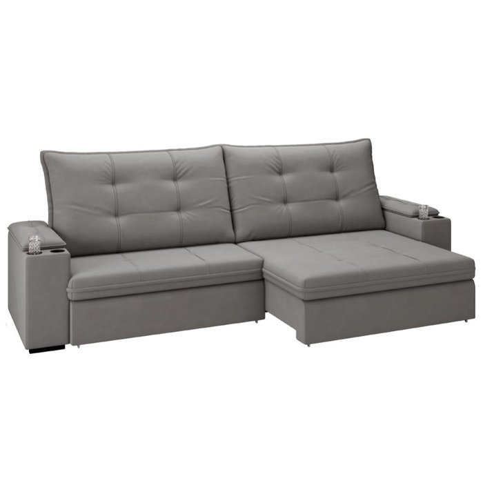 Sofá 4 Lugares com Porta Copos Retrátil e Reclinável França Luizzi 2,30m Suede Cinza