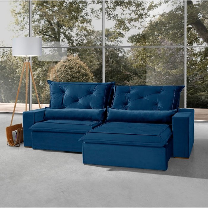 Sofá 4 Lugares Florianópolis Retrátil e Reclinável com Molas e Espuma Soft no Assento Veludo SOF - Azul