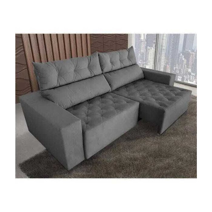 Sofá 4 Lugares Gigante Supremo 2,50m Retrátil e Reclinável Veludo Pena Grafite
