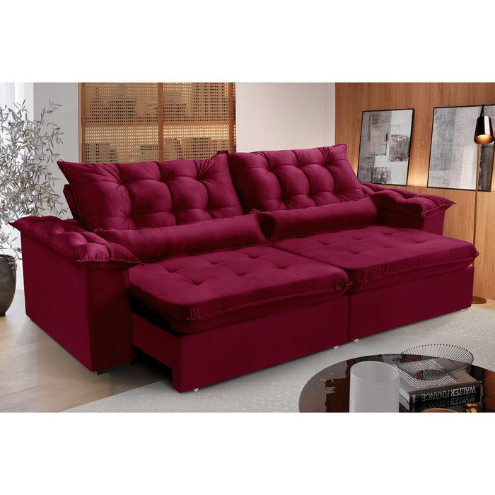 Sofá 4 Lugares Lisboa 2,60 Metros Vinho Retrátil Reclinável com Molas Ensacadas - Sofá na Web