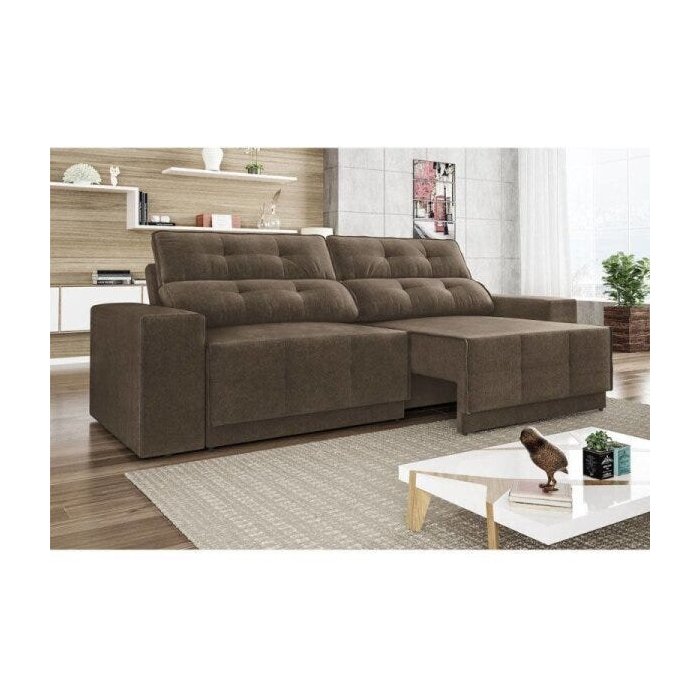 Sofá 4 Lugares Net Jaguar Assento Retrátil e Reclinável 2,30M (L) Marrom Claro
