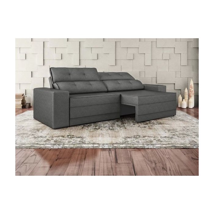 Sofá 4 Lugares Net Leon Assento Retrátil e Reclinável Velosuede Cinza 2,30M (L)