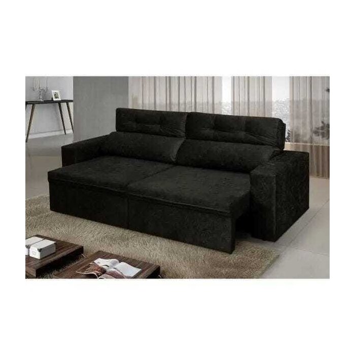 Sofá 4 Lugares Parma Retrátil e Reclinável Suede Amassado - Rifletti Preto