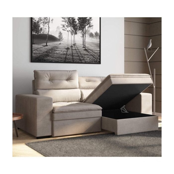 Sofá 4 Lugares Retrátil com Baú Milano Espresso Móveis Cappuccino