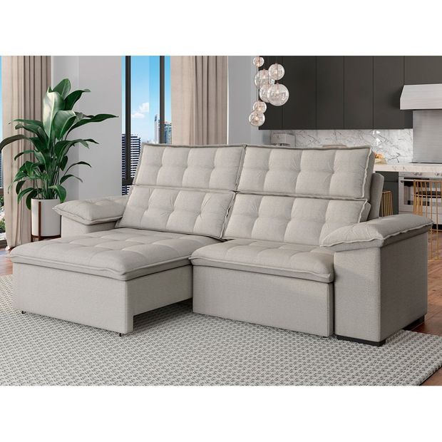Sofá 4 Lugares Retrátil e Reclinável 270cm Denver Bege