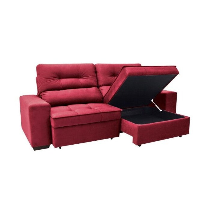 Sofá 4 Lugares Retrátil e Reclinável com Baú Linoforte Artemis Vermelho