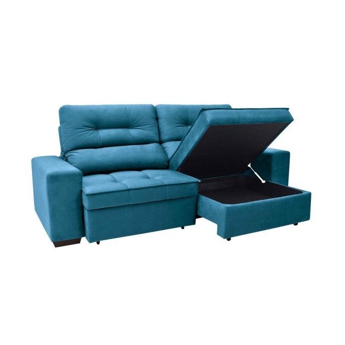 Sofá 4 Lugares Retrátil e Reclinável com Baú Linoforte Artemis Azul Turqueza
