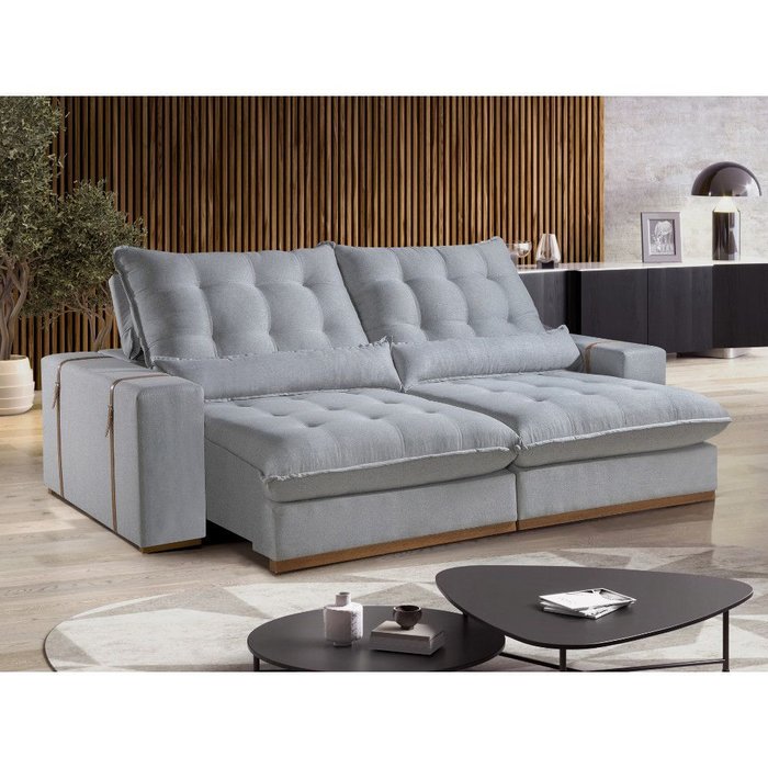 Sofá 4 Lugares Retrátil e Reclinável Detroit 2.50m Molas Ensacadas e Tecido Linho Prata