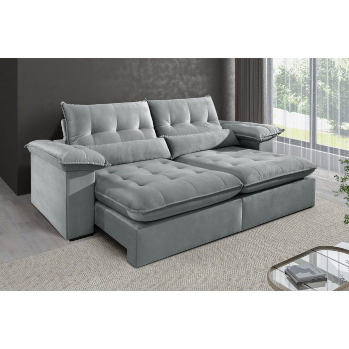 Sofá 4 Lugares Retrátil e Reclinável Mônaco Veludo com Molas Ensacadas