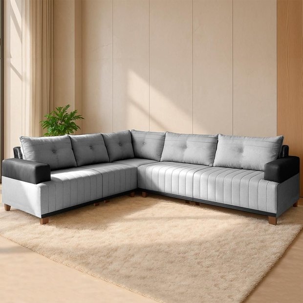 Sofá 5 Lugares 2,57x2,57m Canto Leona Luxo Bom Pastor Estilo, conforto e funcionalidade para a sua sala! O Sofá de Canto 5 Lugares Leona Luxo Bom Pastor oferece espaço de sobra para reunir a família com muito aconchego. Com formato em L e medidas amplas de 2,57m x 2,57m, ele é ideal para ambientes que valorizam conforto e design. Produzido com espuma D33, percintas elásticas e revestido em tecido tipo linho, o sofá garante durabilidade e toque suave. Acompanha almofadas decorativas que completam o visual sofisticado. Chega direto da fábrica, em caixas que facilitam o transporte e montagem simples. Perfeito para quem busca um sofá espaçoso, elegante e fácil de montar. Especificações Quantidade de volumes: 5