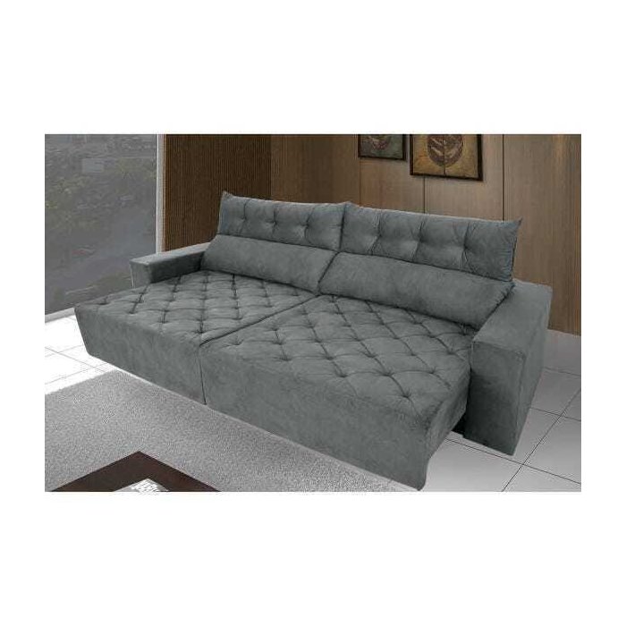 Sofá 5 Lugares Gigante Supremo 2,70m Retrátil e Reclinável Veludo Pena Grafite