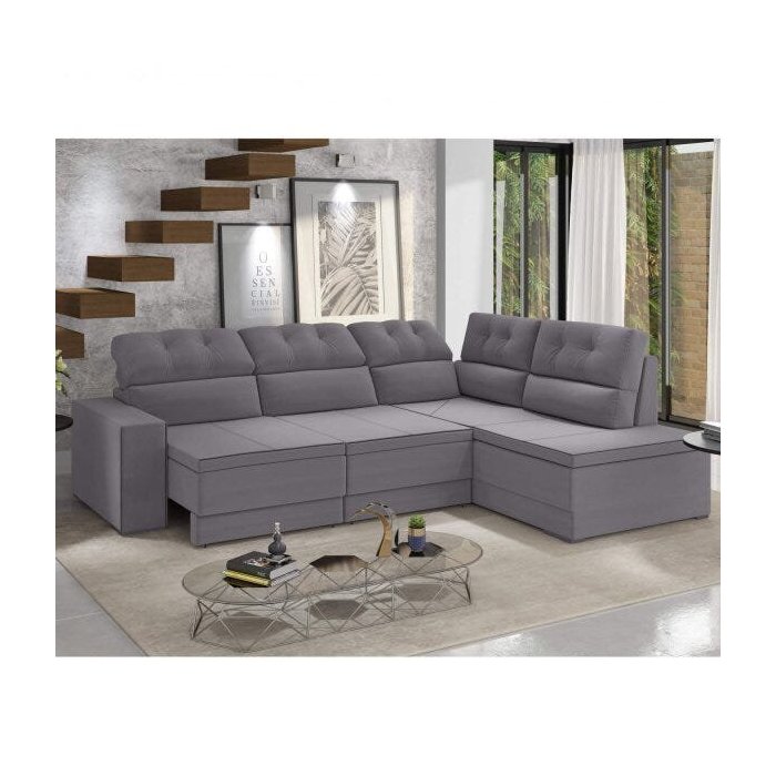 Sofá 5 Lugares Retrátil de Canto Suede Plush Veneza Espresso Móveis Chumbo