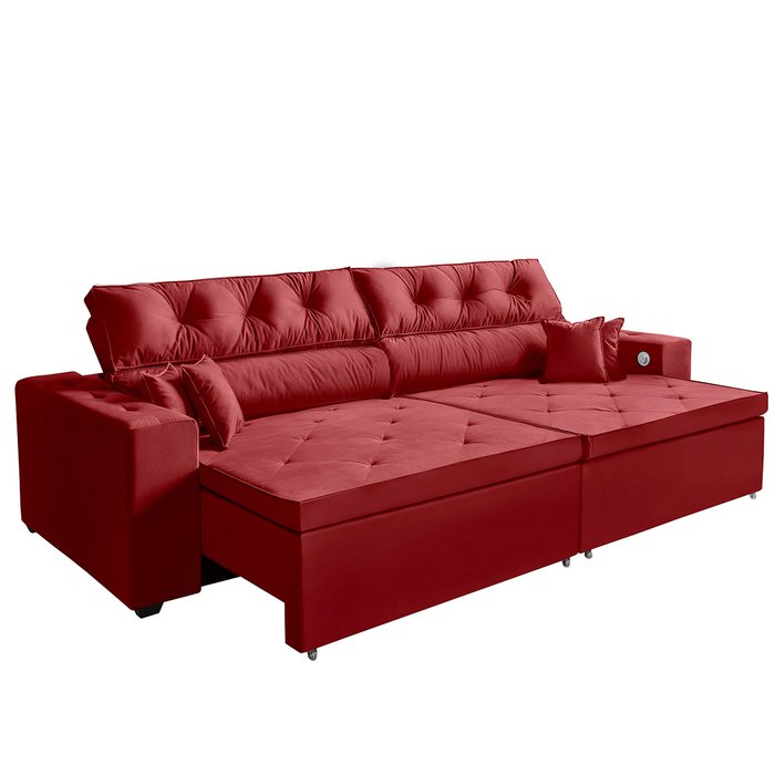 Sofá 5 Lugares Smart 3,02 Metros Vermelho Retrátil, Reclinável Tecnologia Carregamento 3 portas USB