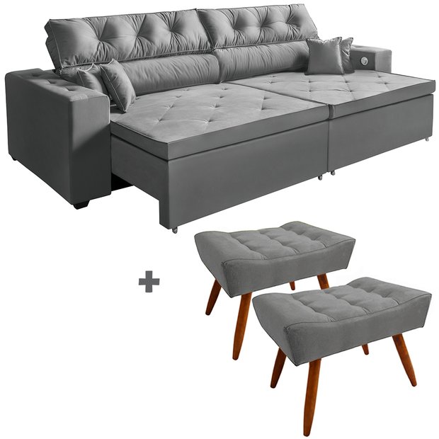 Ele possui encosto reclinável em cinco posições, proporcionando-lhe mais conforto na hora do descanso. E não para por aí: seu assento retrátil conta com espuma D28 e molas espirais, transformando seu sofá em uma verdadeira cama para assistir seu filme preferido.