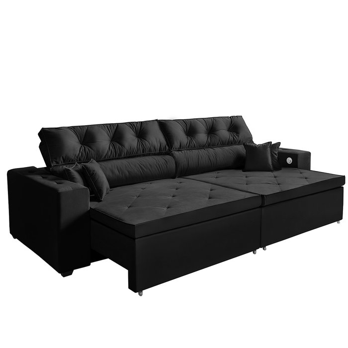 Sofá 5 Lugares Smart Retrátil, Reclinável 3,02 Metros, Tecnologia Carregamento 3 portas USB Preto