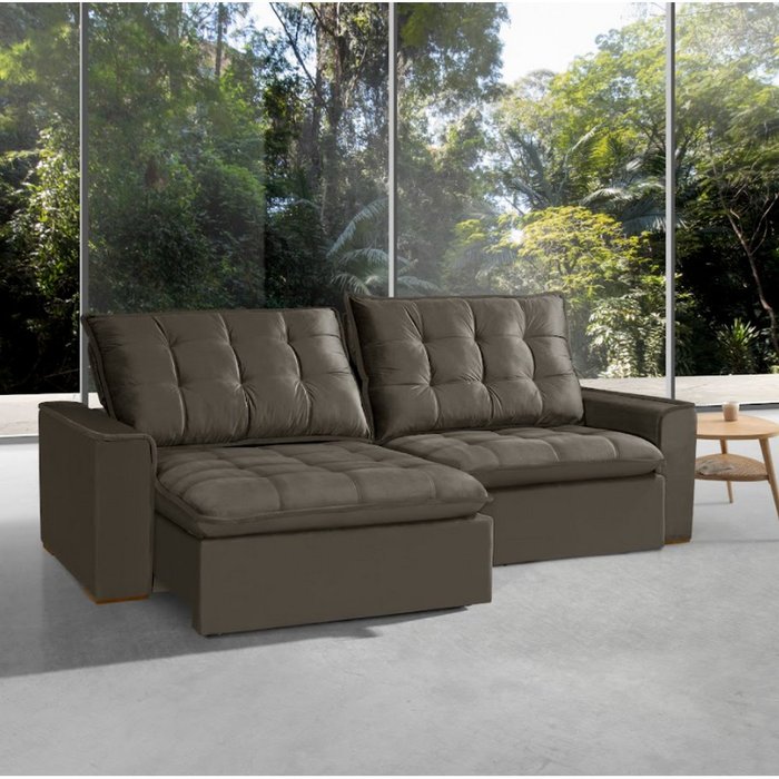 Sofá 6 Lugares Ceará Retrátil e Reclinável com Molas Ensacadas no Assento Veludo SOF - Marrom