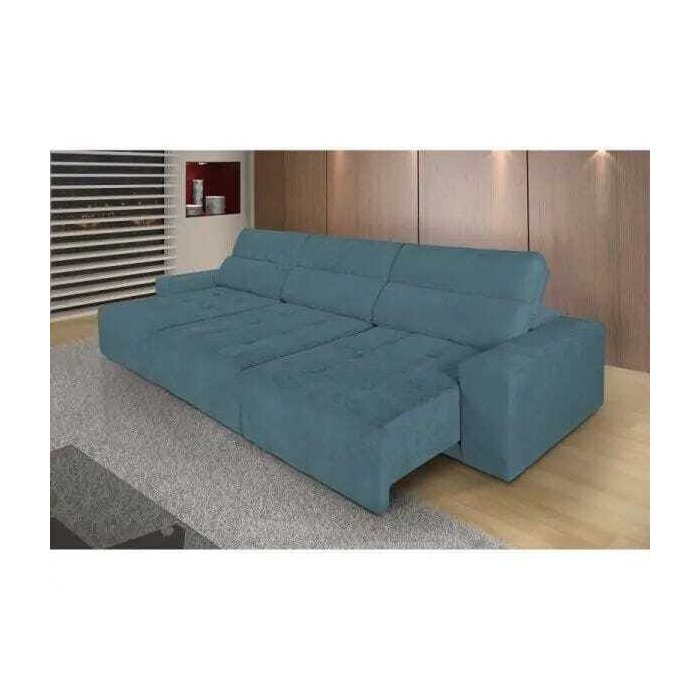 Sofá 6 Lugares Roma Retrátil e Reclinável 3,20M Suede Amassado Azul
