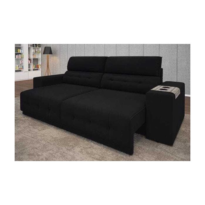 Sofá Abruzzo 2,50M Assento Retrátil e Reclinável Velosuede - NetSofás res_atr_preto