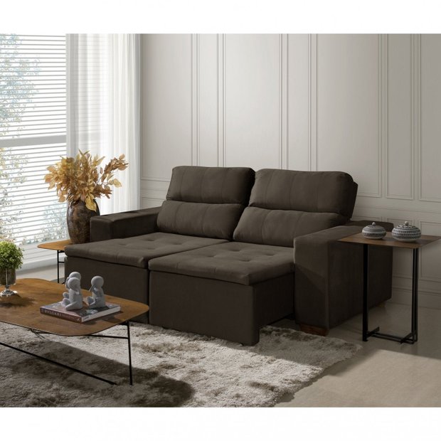 Sofá Alabama 3 Lugares Retrátil Reclinável 1,95m Mola Bonnel em Veludo Yescasa Marrom