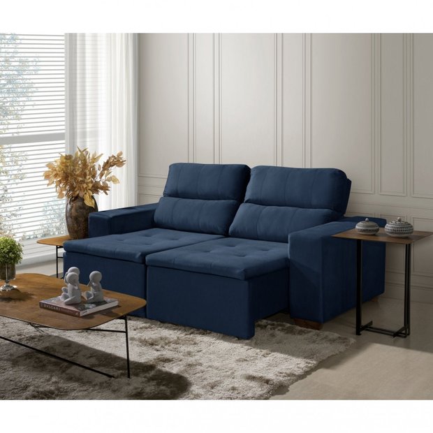Sofá Alabama 3 Lugares Retrátil Reclinável 1,95M Mola Bonnel em Veludo Yescasa Azul