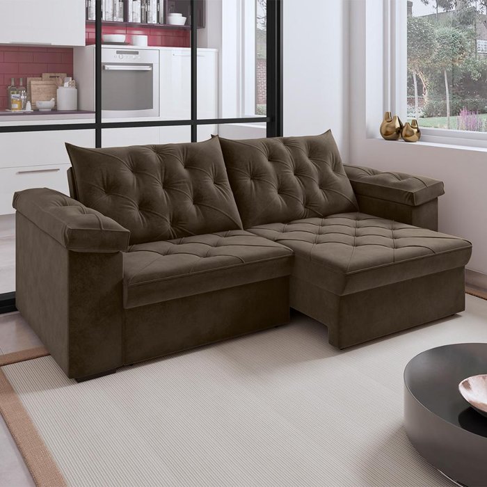 Sofá Aladin 3 Lugares Retrátil e Reclinável Veludo Marrom