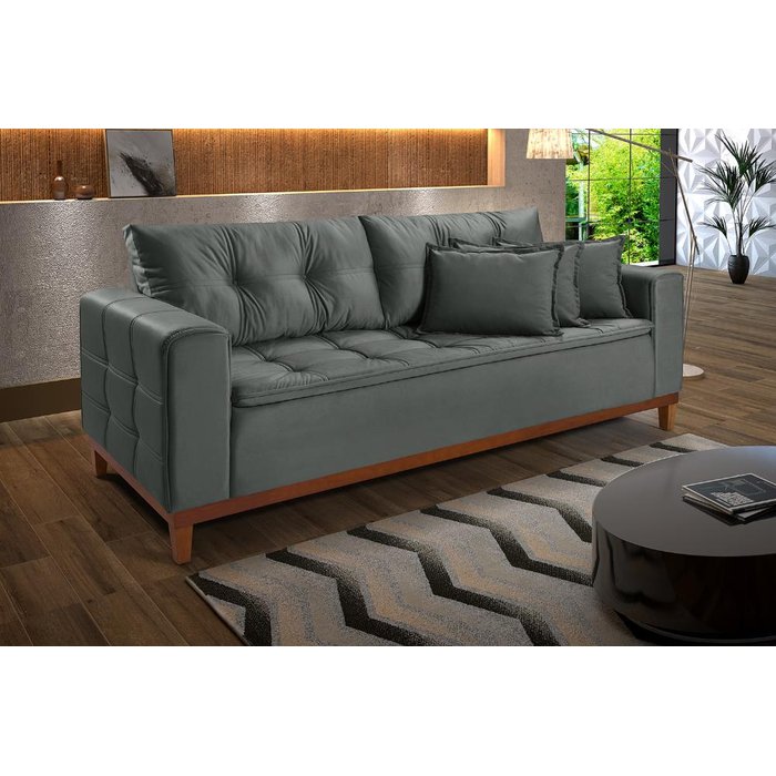 Sofá Atenas 1,70 Veludo Grafite Living Base Madeira Império Estofados
