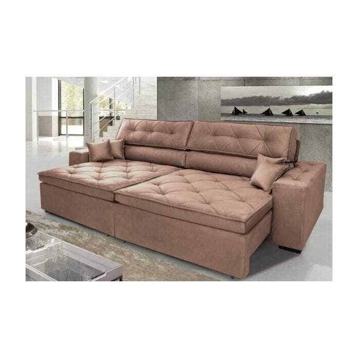 Ver imagem 1 de Sofá Austin 2,02M Retrátil e Reclinável com Molas No Assento e Almofadas, Tecido Suede