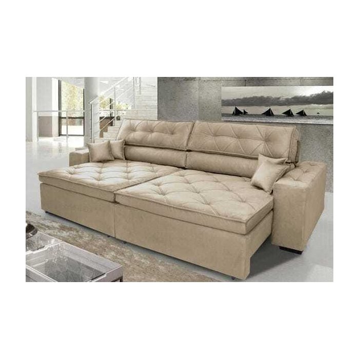 Sofá Austin 2,42M Retrátil e Reclinável com Molas No Assento e Almofadas, Tecido Suede Bege