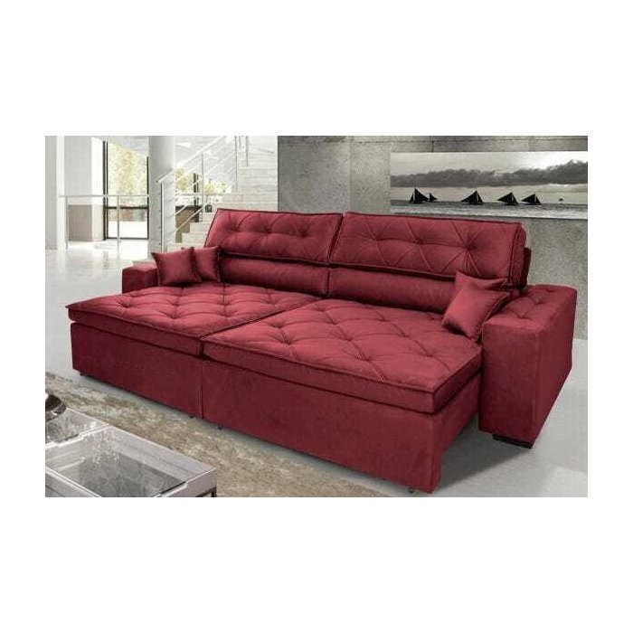 Sofá Austin 2,42M Retrátil e Reclinável com Molas No Assento e Almofadas, Tecido Suede Vinho