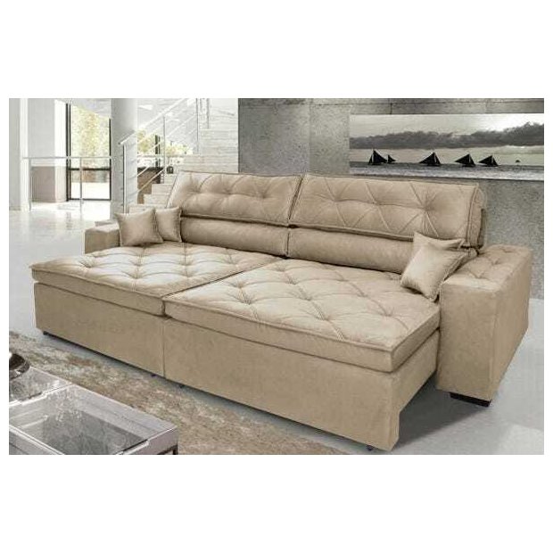 Sofá Austin 2,82M Retrátil e Reclinável com Molas No Assento e Almofadas, Tecido Suede Bege