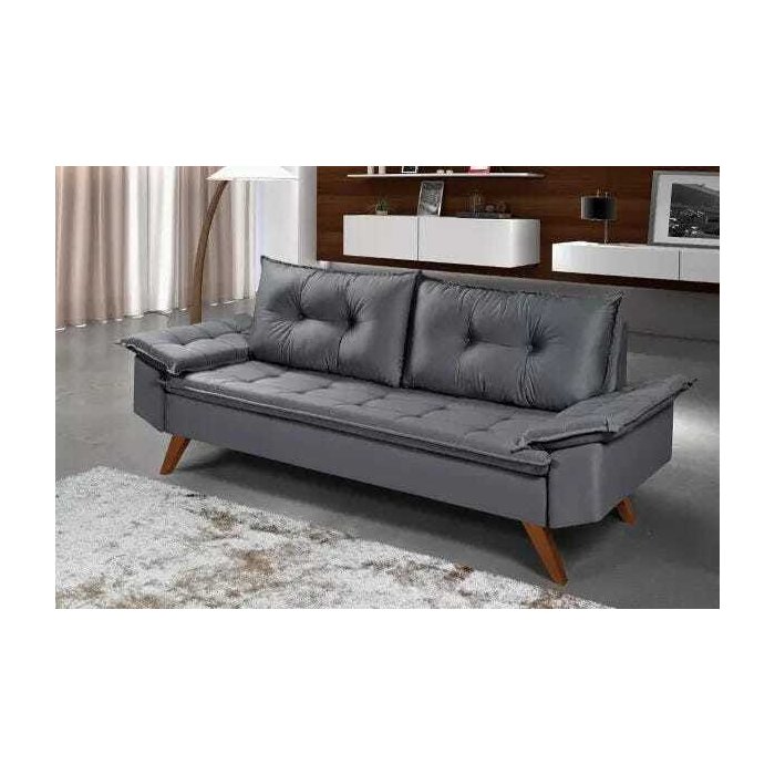 Sofá Bariloche 3 Lugares Pés em Madeira Essencial Estofados Cinza