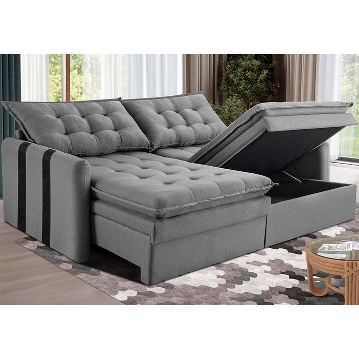 Conforto dos Assentos: Feito com Espuma SoftGel D40 de alta densidade com Tecnologia Thermogel, onde não absorve calor do corpo, mantendo sempre o sofá com sensação FRESH e Aconchegante, percintas Extra Support sendo mais resistente e durável, mantas siliconadas e seus assentos contam com a função baú para maior praticidade e organização.